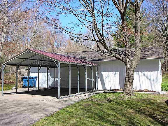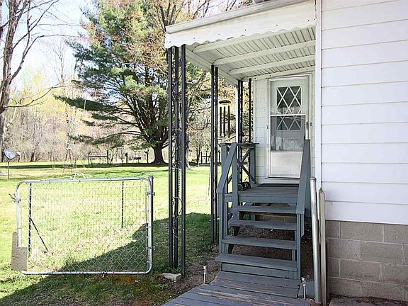 Fantastic find on 6.2 acres! Lovely private setting, 1300 sq foot home with 3 bedrooms 1.5 baths, freshly painted throughout, new flooring, updated bathroom and furnace and central air. home is wired for a generator. Large 2.5 garage plus an Amish built 2 story 48x42 pole building, along with multiple sheds and pens. A little slice of country paradise, you may even spot some of the several turkeys and deer that roam the property.
