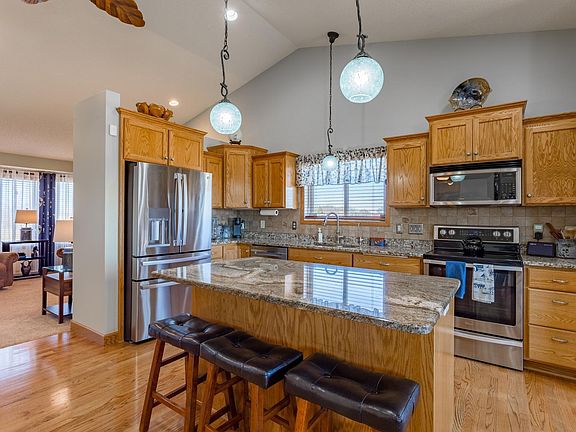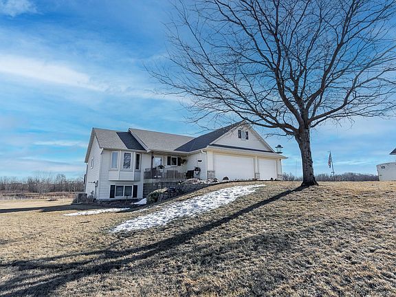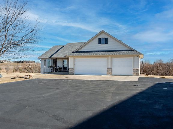 One-level living at its best, set on over 2 acres with so many features to enjoy! the whole Driveway replaced 2 years ago. Including 2 decks, 9x6 and 12x12, a large stone patio with an outdoor fireplace, a firepit, and a total of 6 garage stalls! Oak hardwood floors and vaulted ceilings greet you as soon as you step inside. The kitchen features granite countertops, a center island, pantry, and reverse-osmosis water right from the tap. The eat-in dining area offers access to the upper deck. Also on the main level, 2 bedrooms, including your primary - complete with vaulted ceilings, a walk-in closet and private bath with a tiled walk-in shower. Your first laundry room, living room, and a full bath complete the main level. Check out the 2nd deck on your way downstairs. The walk-out lower level is spacious, featuring 2 large bedrooms, another 3/4 bath, your 2nd washer and dryer, and a storage/safe room. The gas fireplace makes this oversized LL family room feel cozy as can be. While the LVT, lookout windows, hardwired speakers, and the large bar make this lower level perfect for entertaining! The 39x25 detached garage is insulated and heated and offers plenty of space for your toys, workshop, and extra storage upstairs. As soon as you arrive, you will recognize how well this home has been cared for. The driveway and A/C are each only about 2 years old. Welcome home!