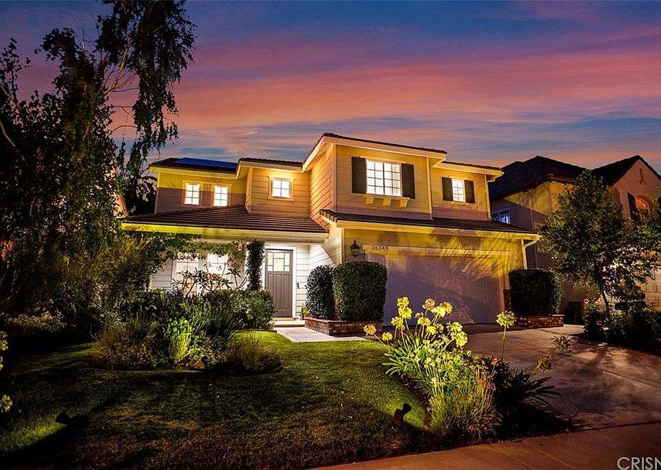 OWNED SOLAR! Upgraded, Move-In Ready Stevenson Ranch Home! Vaulted high ceilings flooding the home with natural light welcome you into this designer, model-like home. Wood like laminate floors run through the entire downstairs. Kitchen was recently remodeled and features quartz counters, custom backsplash, stainless steel appliances, microwave drawer oven, full overlay soft close cabinets with pull-outs, soft close drawers, and handblown glass pendant lights over the island breakfast bar. Open family room has a cozy fireplace and lots of built in cabinetry. The private backyard is your own oasis with patio and garden area with mature plants and trees. Upstairs you will find the spacious master suite with sitting area and private bathroom featuring dual sinks, vanity, walk in shower, tub, and walk-in closet. There are 3 additional bedrooms and guest bath upstairs. Upgraded laundry room with quartz folding counter and lots of cabinetry, Nest Thermostat, Ring Doorbell, ceiling fans throughout, and epoxy garage floor. The Stevenson Ranch community has a park, tennis courts, award-winning schools, and easy access to the freeway, shopping, and restaurants. You have to come visit this home to appreciate its pure perfection.