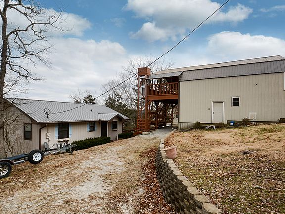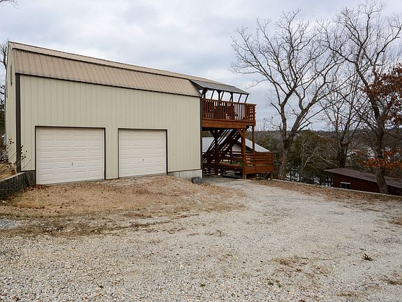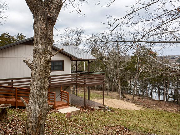 LAKEFRONT HOME WITH GUEST QUARTERS!! Table Rock Lake front with beautiful views of the main channel. Original house (built in 1994) has kitchen, 2 bedrooms and a full bath, 816 sq ft. Property also has a 30 x 30 building built in 2004, with 1034.8 of finished living space. On the lower level is a 2 car garage, a finished bedroom with built in bunk beds and a 1/2 bath. Upstairs has amazing lake views with a full kitchen, bedroom, and full bath/laundry room. Owner has put in an elevator to carry all your lake ''stuff'' so don't worry about hauling it upstairs! Even better house is sold with ALL furniture, golf cart and mower. 10x24 boat slip $30,000, 10x28 slip with a 10,000 lb lift $35,000. Buyer should do own due diligence verifying all measurements, acreage and property amenities.