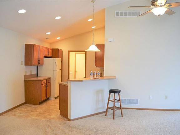 Lovely 2 bedroom, 2 full bath condominium located in Dublin Hills in Perry Township. Features a fully applianced kitchen with breakfast bar open to the dining area and living room, both with vaulted ceilings. Split bedroom layout - both bedrooms have large walk in closets and ceiling fans, and the master has a large private bath. The 2nd full bath is near the other bedroom. The laundry room leads to the 2 car garage with pull down stairs for storage. Just professionally cleaned and all carpeting cleaned as well. A 2-10 Home Warranty is included for the lucky buyer. You'll love this well-kept community!