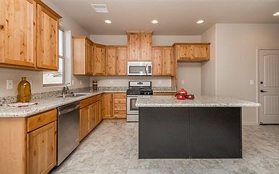 - Interior Features: Eat-in Kitchen, Fireplace-Gas, Kitchen Island, Liv/Din Combo, Live on One Level, Master On Main, Raised Ceilings 9+ft, Walk-In Closet(s), Counters-Granite, Kit/Din Combo, Garage Door Opener(s)