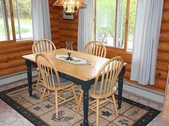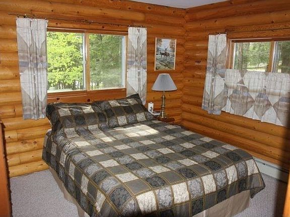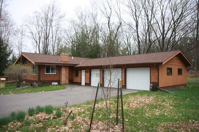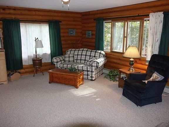 Full log home located on 210 feet of Lake Emma frontage and 5plus or minus acres of land. The home features 3 bedrooms, 1 full bath/shower, spacious living room with relaxing yard views, informal dining room, an attractive kitchen with oak cabinetry and walk in pantry, and a 25 by 40 attached garage with basement access. The acreage is split by Cook Drive with the majority of the parcel lying to the backside of the road. The lot slopes gently to the waters edge.