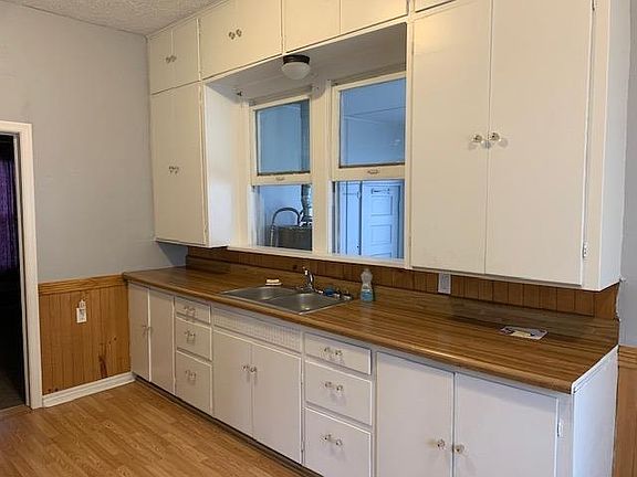 This Bungalow Style home has 3 bedrooms, 1 bath, large living room, kitchen, utility room, chain link fence, and detached garage. Also updates in the last few years includes new gutters in 2019, updated electrical in 2018, newer 40 Gal hot water tank, water line from street to house, and sewer line from house to alley.