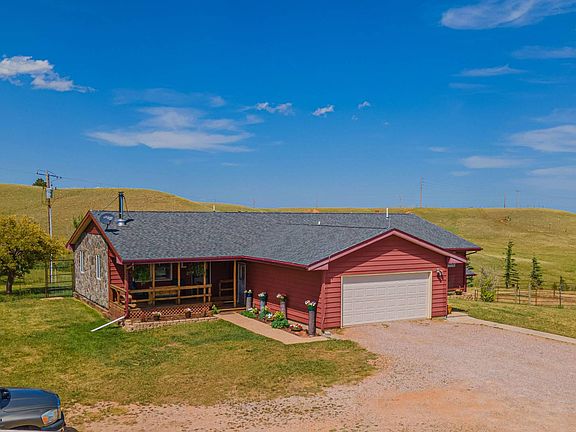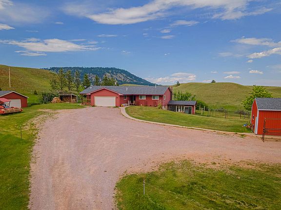 Home with 6.53 acres on the east edge of Sundance with more acreage available. Spacious 3-bedroom home with attached garage. Open main level with family room that has a cozy wood stove, blue pine accent wall and patio door to the back yard. The large family room flows into dining area and living room, with the galley style kitchen in the middle. The kitchen has a built-in pantry closet, plus access to the garage, and laundry room with 3/4 bath. The living room has brick wood burning fireplace. Main level includes 3 bedrooms and 3 baths. The walkout basement has 1 non-conforming bedroom, a 1/2 bath and ample storage area. The adjacent lower-level sun room has south facing sliding glass doors opening to the yard. Steel siding, metal soffits, and a new roof in 2018. Has city services and paved access. * There are plenty of outbuildings and ample gravel parking surrounds the structures., 26'x50' Shop, 40'x56' Shop and 24'x28' Detached garage. Great visibility and prime location for a commercial venture with frontage on Cleveland Street and just 1/2 mile from Interstate 90. The land consists of 6.53 acres inside the Sundance City Limits. The adjacent 67.73 acres is also available to purchase.