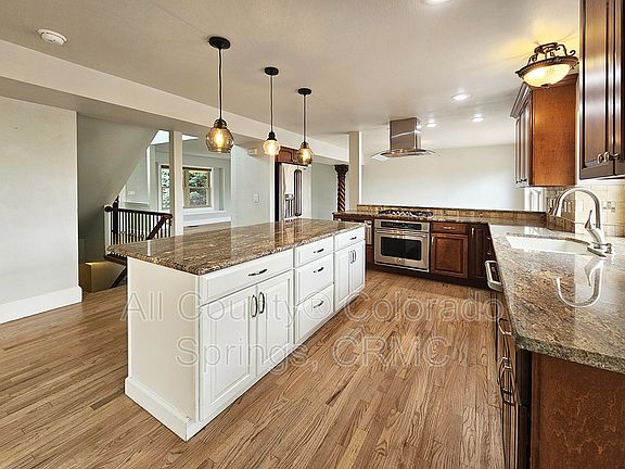 5 Bedrooms, 3.5 Bathrooms, Basement Media Room, Huge Backyard, and Oversized 2 Car Garage home for rent. Upon Entry you can either ascend the grand staircase, or head to the left for the den and formal dining room that opens into the kitchen. Kitchen comes with granite counter tops, 5 burner gas cook top, stainless steel appliances, gas stove with hood, The living room is adjacent to the kitchen and leads out to the backyard retreat. The backyard has a grape-lit pergola, and custom flagstone fire pit. Also includes a custom hammock swing set. Extra storage in the backyard shed. Back inside the living room, there is a custom stone gas fireplace, vaulted ceilings, and a wall of windows. A half bathroom, with a laundry room to include a washer and dryer, and access to the garage finish off this main level. Upstairs you will find the primary bedroom suite with a walk-in closet, attached bath with barn door, double vanity, stand up shower, and soaking tub. Two additional bedrooms and a full sized bathroom, along with a catwalk overlooking the living room complete the upstairs level. Down in the basement you enter the darkened media room, a dry bar, two additional bedrooms, another full-sized bathroom, oversized closets, and storage. The backyard has grape-lit pergola, bubbling hot tub, and custom flagstone fire pit. Also includes a custom hammock swing set. Extra storage in the backyard shed. Owner may consider up to 2 pets upon approval, with additional pet deposit, pet admin fee, and Petscreening profile. Offered by All County Colorado Springs, CRMC. Call us today, or see more of our properties by visiting us online. Please note, if approved for this property, the longest we can hold off before starting a lease is two weeks from the approval date, unless home is not move in ready at time of application approval. *Renter's Insurance is required upon execution of lease. All County Colorado Springs, CRMC provides coverage options with a 3rd party vendor. Inquire within for more details. 11 Month Lease for initial residents This home is exclusively managed by All County Colorado Springs, CRMC, a professional brokerage firm licensed by the state of Colorado. All County Colorado Springs, CRMC is a dedicated fair housing advocate and does not discriminate based on race, color, national origin, religion, sex, familial status or handicap (disability), ancestry, marital status or creed, sexual orientation, source of income, hair style, and all other protected classes defined by fair housing. Reasonable accommodations or modifications will be made in rules, policies, practices, property or services when such accommodations may be necessary to afford a person with a disability the equal opportunity to use and enjoy the property Applicant has the right to provide All County Colorado Springs CRMC with a Portable Tenant Screening Report (PTSR) that is not more than 30 days old, as defined in 38-12-902(2.5), Colorado Revised Statutes; and 2) if Applicant provides All County Colorado Springs, CRMC with a PTSR, All County Colorado Springs CRMC is prohibited from: a) charging Applicant a rental application fee; or b) charging Applicant a fee for All County Colorado Springs, CRMC to access or use the PTSR.