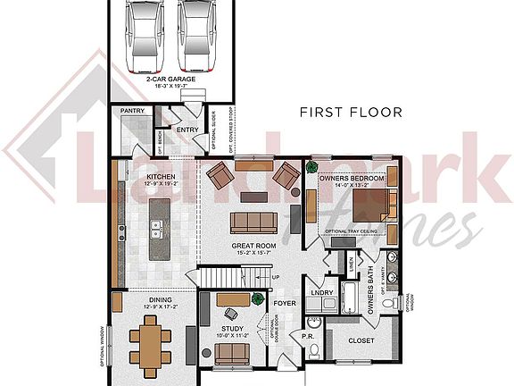 This stately 2100+ square foot home has everything.. The 2-car, alley load garage enters into a mudroom, with the option to add built in lockers or a slider to a covered stoop. A vaulted ceiling in the foyer opens into dramatic 2-story ceilings in the great room with optional fireplace. The first-floor owner's suite offers a private bathroom and expansive closet and is conveniently located near the laundry room. The open kitchen design provides plenty of counter-top space and opens into the dining room, perfect for entertaining guests. The upstairs features 2 bedrooms and a full bathroom, with the option to add a loft. (Only selected lots can accommodate this home plan. Please contact the Community Sales Manager for details.)