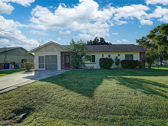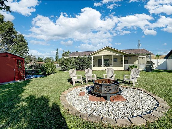 Motivated seller, please bring all reasonable offers!!! If you love outdoor living and breathtaking sunsets, this is the home for you! Situated on a beautiful lakefront lot, this adorable home offers stunning sunset views and the perfect setting for enjoying Southwest Florida's fantastic weather. Relax in your fully fenced backyard, whether it's around the fire pit, the outdoor dining area, or the spacious screened lanai. The peaceful lake is home to friendly ducks, fish and turtles that love the company of visitors. Fish or kayak from the comfort of your backyard. The garage comes equipped with a screen, so you can comfortably use the space even during mosquito season. (If you'd prefer to park your car in the garage, the screen will need to be removed.) Conveniently located near Palm Beach Blvd, the home feels tucked away in a quiet neighborhood. New roof December 2021. Updated kitchen 2022 with new appliances, cabinets and quartz countertops. AC is 6 years old. The slider and most windows have been upgraded to hurricane impact. House stood strong during hurricanes Ian, Helene and Milton with no damage or flooding. Don’t miss your chance to call this cozy lakeside oasis your new home!