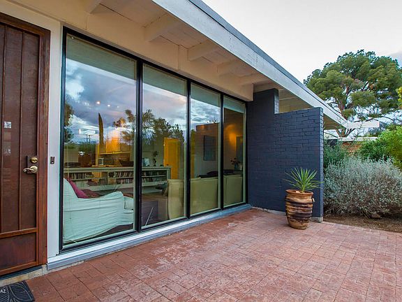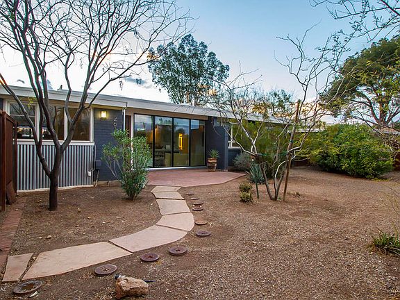 This is a rare mid century home that is unique, vintage and one of a kind. The floor plan is open, Bright, spacious and flows well. The windows are from floor to ceiling letting in an abundance of light. There is a seamless connection to the outdoor courtyards that have been professionally landscaped and shaded. The custom metal fencing allows for privacy and seclusion. Excellent refurbishing has been done to this home which was designed by local architect Phil Clovicko. There are custom metal screen doors. It has been freshly and meticulously painted. There is new wood work, new counters, roof work, and much more.