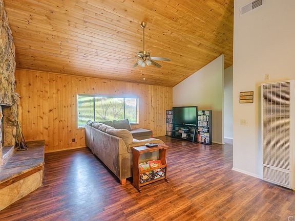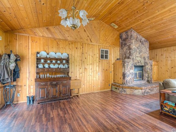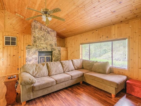 A rare find! Contemporary home with the feel of a rustic cabin. Sitting on 2.82 acres close to town, but with the feeling of country living. This home sits back off the road for extra privacy. A private paved driveway leads to the spacious detached garage/shop with the home tucked behind, sheltered from any potential of traffic and noise. Follow the entry pathway around to the covered front porch and then into quiet charm. As you step through the formal entryway the living room opens before you with spanning Knotty Pine ceilings and Knotty Pine walls. A flagstone fireplace welcomes you to cozy warmth on those cold winter days and the heat-a-lator system makes sure the warm air circulates throughout the room. A natural gas wall heater is also available along with central heat to make sure life is always convenient. In the kitchen you will find tile counters and a garden window. A slider door exits from the dining room out to the rear covered porch. Another slider exits to another rear porch from the master bedroom. Outside beckons with a brick patio at the rear, overlooking garden areas, fruit trees, and grazing areas. If you're lucky, the goats will come over for a visit. A large dog kennel area also sits behind the house, but could be used as a fenced garden. New roof in 2010. Don't miss out on this amazing home. This property has so much to offer and is one of the area's 'hidden gems.' Make an appointment to view today before this one gets away!