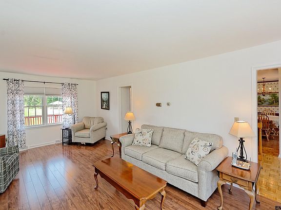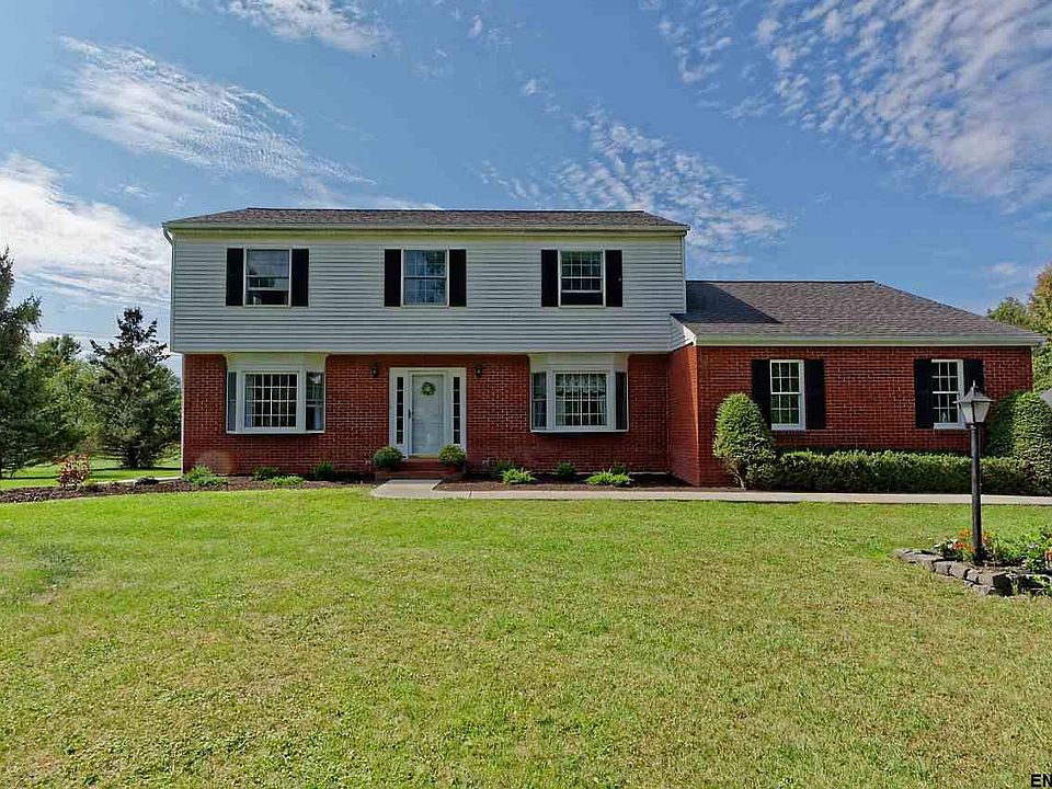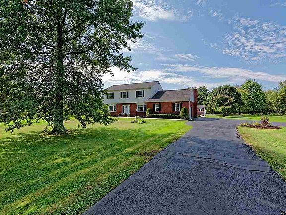 Beautifully maintained single-owner home on sprawling 25 acres w/ a park like setting! This home features 2300+ sf of living space including formal LR/DR, and Fam room w/ wood FP! 4 bdrms, 2.5 bath including Master w/ ensuite/walk-in closet. Manicured landscaping and IG pool w/ pool house! Separate heated 2 car garage w/ loft for storage, 220 amp electrical. Roof '07, kitchen '11, 3 baths '15, replacement windows '13, walkway, furnace & heat pump '12. 10 mins to Albany, 787, I90, & East Greenbush Schools!