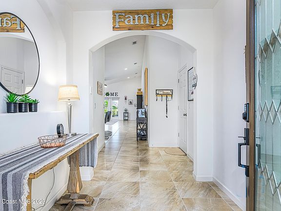 Buyer financing fell thru! Gorgeous Smart home in this upcoming new area of St John's Heritage pkwy. A true 4 bedroom and 3 full baths, a floor plan that will exceed your expectations with In-law suite potential. High soaring ceilings with upgraded new lighting, 20x20 inch beautiful porcelain tile, Stunning granite counters with an enormous 7x6.5 ft island. All stainless steel appliances convey. Great room is 24x16.9 with a wide open floor plan and views of the lake. A large primary bedroom suite with outdoor access also has views of the lake. Dual walk in closets and dual bathroom sinks. Large soaking tub and walk in shower. Lots of closets throughout. Fred Poppe Regional Park located next door & offers baseball, basketball, volleyball, soccer, frisbee golf, dog park, & mor Lawn maintenance included in HOA. Relax on the back screened porch and watch the wildlife or grow your very own garden with the convenience of an irrigation system. 35min away from the beach; 15 min away from Golf and Fishing. New Publix and Long Doggers are coming soon just around the corner. 15 minutes from Shops, Mall and restaurants. Free Boat launch at Front St. in Melbourne. Lots of nature trails and bike trails to explore. St. John's Pkwy has a 6 mile long sidewalk. Easy access to 95 and 192 and only 45 min to Orlando!