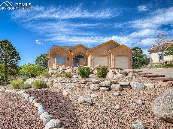 Immaculate "1 owner" custom walk-out rancher in Mountain Shadows, w/ total "one level living" on a .45 acre lot backing to a private common area ravine w/ towering pines, scrub oak, wildlife & mountain views ~ Open great room floor plan w/ multiple bayed windows, glass & sunshine everywhere ~ 9ft. to 18ft. ceilings on the main level & 10ft. ceilings in the walk-out basement ~ French & pocket doors ~ Island kitchen w/ granite tile counters, 42" cabinets w/ crown molding & stainless steel appliances ~ Large laundry room w/ sink & built-in ironing board + washer & dryer included ~Instant hot water ~ Security system ~ Chair lift, wiring for theatre & shrunk all included if desired ~ 1 of the 2 family rooms is all set up for a home theatre ~ 15 x 10 Trex deck + automatic awning ~ 12 x 8 side patio off the walk-out basement ~ Formal living & dining rooms were used as offices ~ Finished storage room has a window & could be a 4th bedroom ~ Easy to maintain Xeriscape yard has drip system & sprinklers ~ 24.5 x 23 finished & painted garage ~ Shows great & the quality finishes & pride of ownership are evident everywhere!
