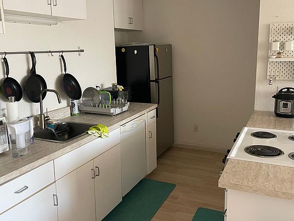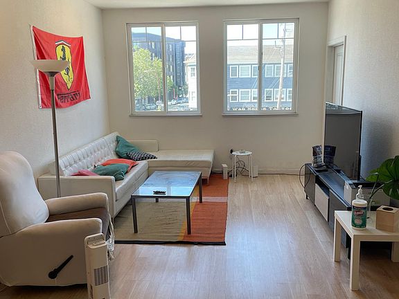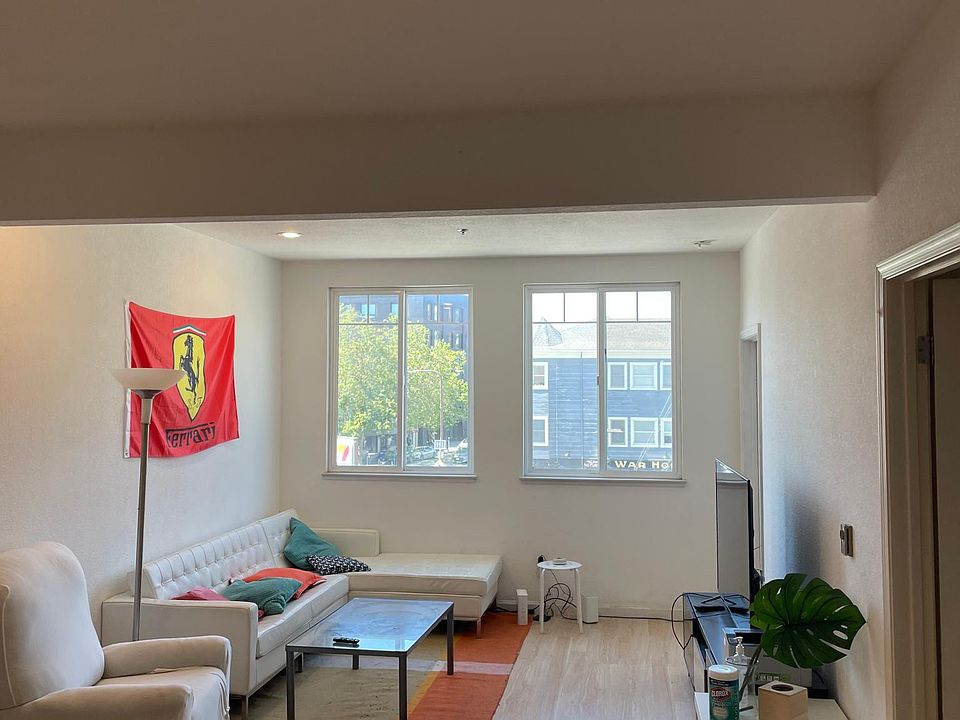 This one room is part of a three bedroom, one living, one bathroom apartment. The other two rooms are rented by two male identifying roommates studying engineering at UC Berkeley. They are easy going and fun people to hang out with. The apartment has dishwasher, fridge, microwave and central Air conditioning. Laundry on the same floor and shared with other apartments). The room comes furnished with a full bedframe, mattress, two dressers, desk, office chair and standing lamp. Shared Living room has TV, couch, center table, etc. Kitchen is fully furnished and comes with cooking utensils, dinnerware, cutlery, etc.. Renters pay for the third of electricity and internet on actuals.