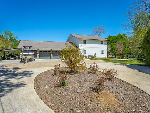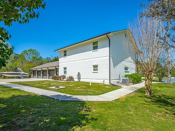 Come home to your own private oasis as your primary residence or your weekend escape. This all-brick waterfront home with 345+/- of water frontage @ 685+/- contour line is situated on 2.1+/- level acres. Enjoy the convenience of a covered boat slip with lift and two sea doo ports, making it easy to enjoy all that waterfront living has to offer. This property boasts a 4-car garage plus carport, perfect for car enthusiasts. Step inside and be greeted by a beautiful, bright, and updated kitchen with white cabinets, quartz countertops, a center prep and service island, stainless steel appliances, and pantry for ample storage. The kitchen is completely open to the den, which features a wall of windows capturing the spectacular water views and filling the rooms with natural lighting. There are doors off the den that lead out to the covered patio that is perfect for outdoor entertaining. In addition to the main den, there is an additional den with a fireplace and wet bar that includes a sink, cabinets, and a bar, making it the perfect spot to entertain guests or unwind after a long day. There is also a built-in desk area that could be used as a home office, perfect for those who work remotely. The master is quietly tucked away on the second level. Waking up to stunning water views from the comfort of your own bed in this oversized master suite (21'3 X 23'3+/-) is a true retreat! It features a fireplace, two walk-in closets, an office area, and a private covered deck overlooking the water. From porch to porch, your living space is expanded outside while overlooking the water! Invest in the quantity of your time and the quality of your living. Life is better on the lake! Schedule your tour today! The buyer is responsible to do their due diligence to verify that all information is correct, accurate, and for obtaining any and all restrictions for the property. The number of bedrooms listed above complies with local appraisal standards only.