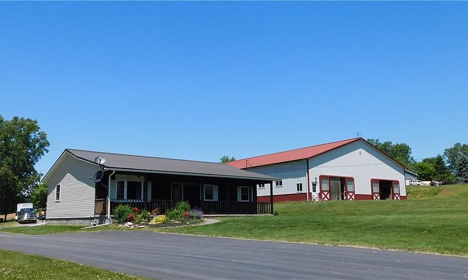 Motivated out of town owners wants to sell,A terrific opportunity for Equestrians and gentlemen farmers, the 7.99 acres includes 3 fenced pasture lands, indoor 60x160 riding arena for demonstrations, horse riding lessons, and rodeo events.A custom built ranch,1989 Ranch is bigger than it looks,with 4 bedrooms and two full baths, large eat-in kitchen with center island, new kitchen appliances. Morton building with 9 horse stalls, office ,tack room and an attached indoor 60x160 riding arena. An artisan well supplies unlimited water for horses and any livestock needs. Public water for the house, new Gen-X generator, A 24x 40 barn perfect for tractors mowers storage.Weedsport schools ,minutes from Exit 40- NYS thruway. 30 mins to Syracuse or Rochester. A must see, buildings have earning potential,
