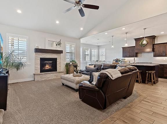 Beautiful home on a half acre lot in a cul-de-sac! You'll enjoy the spacious layout with 9 ft. ceilings on each level, plantation shutters and granite countertops throughout, open kitchen with big walk-in pantry, stainless steel appliances including double ovens and a gas stovetop, lockers in the mudroom, gas fireplaces on each level, big main level laundry with cabinetry, master bedroom with walk-in shower and walk-in closet, instantaneous hot water, 2 water heaters, water softener, fully finished walkout basement with a kitchenette, large finished storage room, huge heated and painted 4-car garage, RV pad, and a big backyard for the kids to play! Sq. footage per tax data; Buyer to verify all information.