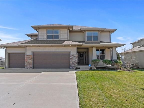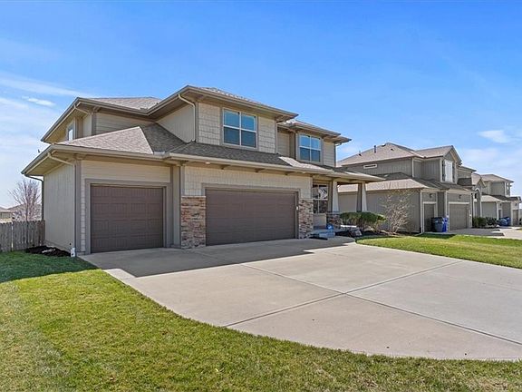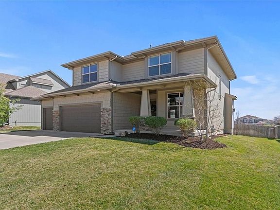 Pride of Ownership shows in this immaculate well maintained 4 bedroom, 3 1/2 bath, 2 story with a 3-car garage in Prairie Farms Subdivision. This Gabriel Home is award winning MaKenna plan. Impressive kitchen with custom cabinets, walk-in pantry, and a terrific island. Fireplace with built in shelves. Hardwood floors on the main floor. All bedrooms have walk-in closets and new carpet. Sprinkler system and fenced in yard too! Prairie Farms amenities offers pool, walking trails and play area. Close to Lake Olathe for your outdoor fun. Truly a must see!!