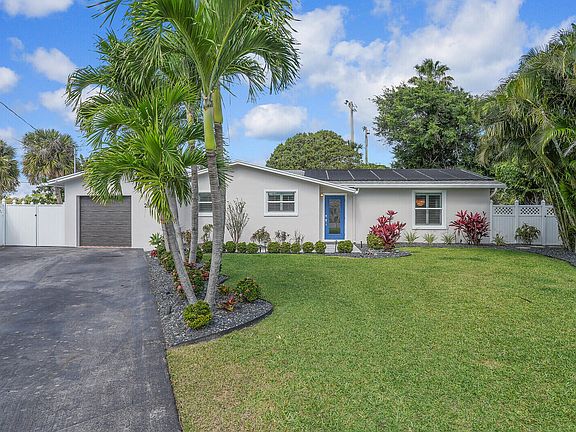 Welcome to this beautifully updated, no HOA, 3-bedroom, 2-bathroom single-family home, complete with a charming 1-bedroom, 1-bathroom casita - perfect for guests or as a private retreat. Both, the main house and casita have been fully renovated, offering a modern and open living space. The kitchen, which flows seamlessly into the dining and living areas, features sleek finishes and is perfect for entertaining. Both bathrooms have been updated with contemporary touches, and tile flooring runs throughout the entire home for a fresh, cohesive look.For added convenience, the one-car garage has been converted into storage but can easily be restored to its original use. The home is equipped with impact glass windows and doors, a new impact-rated garage door, and has recently been repainted on the exterior, giving it a refreshed and stylish curb appeal. Step outside to your very own backyard oasis, where you'll find a newly renovated pool, screened-in for year-round enjoyment. The covered patio is ideal for outdoor dining or lounging, while the landscape lighting creates a serene ambiance as you enjoy breathtaking sunsets. A soothing waterfall cascades into a pond, adding to the tranquil setting perfect for relaxation or entertaining. This is more than a home; it's a retreat where every detail has been thoughtfully updated for comfort and style. Don't miss the opportunity to experience this stunning property! Located in the heart of North Palm Beach, this home offers the perfect blend of convenience and small-town charm. Enjoy access to fantastic local amenities, including the North Palm Beach Country Club, where you can indulge in a range of recreational activities such as swimming, tennis, golf, and social events. The area boasts an array of local parks, offering everything from dog parks and playgrounds to volleyball courts and scenic walking loops, ensuring there's always something to enjoy outdoors. For boating enthusiasts, the resident-only boat ramp and dedicated boat and RV storage make it easy to take advantage of the beautiful waterways nearby. Families will appreciate the proximity to highly-rated public, private, and charter schools, ensuring top-notch education options for children. With its welcoming atmosphere and community-oriented vibe, North Palm Beach truly offers the feel of a peaceful, close-knit town while still being close to all the conveniences you need.