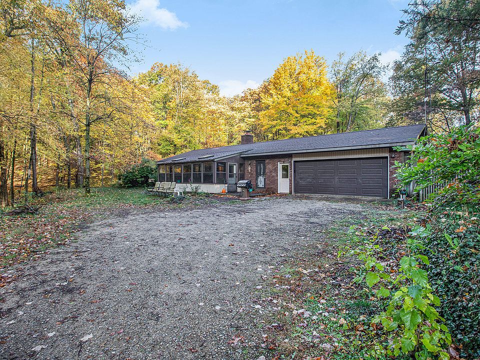 This Efficient Berm style Ranch home has over 9 Acres of land two main floor bedrooms and laundry all on the same level. The home has a fairly open layout with proper views looking south over your private pond. The 9.8 Acres have groomed nature trails for walking or cross county skiing as well as a variety of wildlife including Deer, Turkey, and Pileated Woodpeckers to name just a few. The new wood floors bring the natural tones from the woods into the home and the updated counter tops accent the kitchen. See Attached list of fauna and flora on the property.