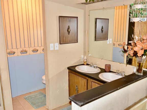 Spacious manufactured home located on 10 acres M/L in the Wilson School District. Home has been fully rocked w/a 14' x 70' den addition. Metal roof, 14' x 30' covered patio, 3 bed/2 bath, formal dining, living room has fireplace. Kitchen has island w/cooktop. Master has large bath w/tub, separate shower, double sinks. Bedrooms are large w/big closets. Storm cellar, 30 x 30 metal pole barn w/concrete floor and separate office/tack room. Former roping arena. Fully fenced, partially wooded. Selling as is.