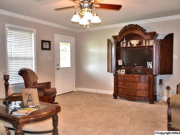 - LIVING ROOM DESC: Carpet, Crown Mold, Smooth Ceiling, Ceiling Fan