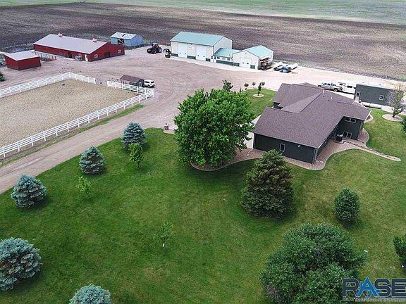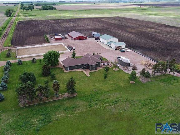 Must see in person to understand the true beauty of this farm. Roughly 10 acres set up for horses, hobby farm or to run a business out of. Owner is an absolute perfectionist!!!! Only a mile from town and 5 miles from the interstate. Easy access to Sioux Falls (30 miles away). 140x100 Outdoor Riding Arena, 100x50 Horse Barn that includes 4 stables, 110x38 workshop, 30x12 detached garage, 20x24 3 sided building. All upgraded to the max and in perfect condition. Home boast over 1900 on the main, over 3700 square feet total. Custom kitchen cabinets. Upper and lower laundry rooms. 4 bedrooms and a office!!! This property is all setup and ready to go. There are no repairs needed. Must see to appreciate. Drone footage available.
