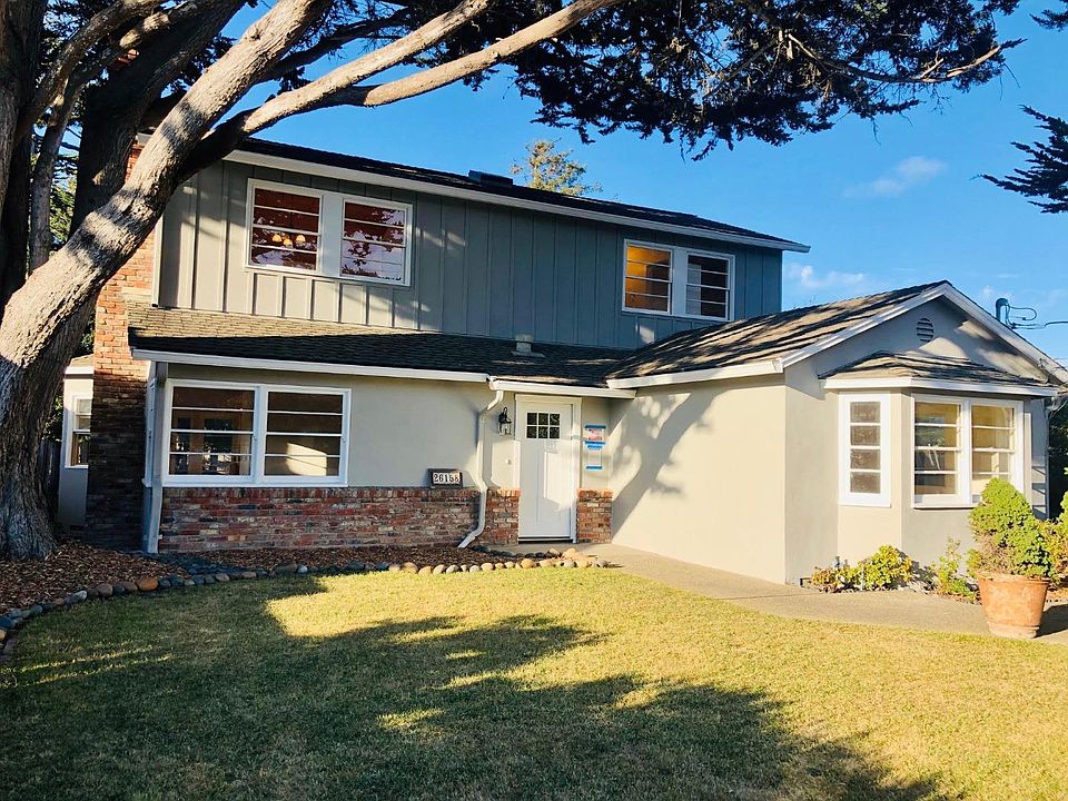 A change of lifestyle awaits you in Carmel!. Possibilities abound in this 4 bedroom/3 bath charmer in desirable Hatton Fields, just a short ride to Carmel dining, shopping, world class Pebble Beach golf & Carmel Schools. The living room with cozy fireplace & original hardwood floors flows effortlessly to the open kitchen/dining area to a back deck and huge backyard. With 2 ensuite guest rooms on the main floor, the second level primary ensuite bedroom enjoys huge windows, high ceilings and privacy with a work from home office or versatility with a 4th bedroom. Other features include a spacious indoor laundry, and 2-car garage, Perfect as a primary residence or second home get-away! Freshly painted inside and out, brand new Bryant furnace installed October 2020, new exterior doors, garage door, fixtures, hardware, vanities, lighting and flooring refinished October 2020.