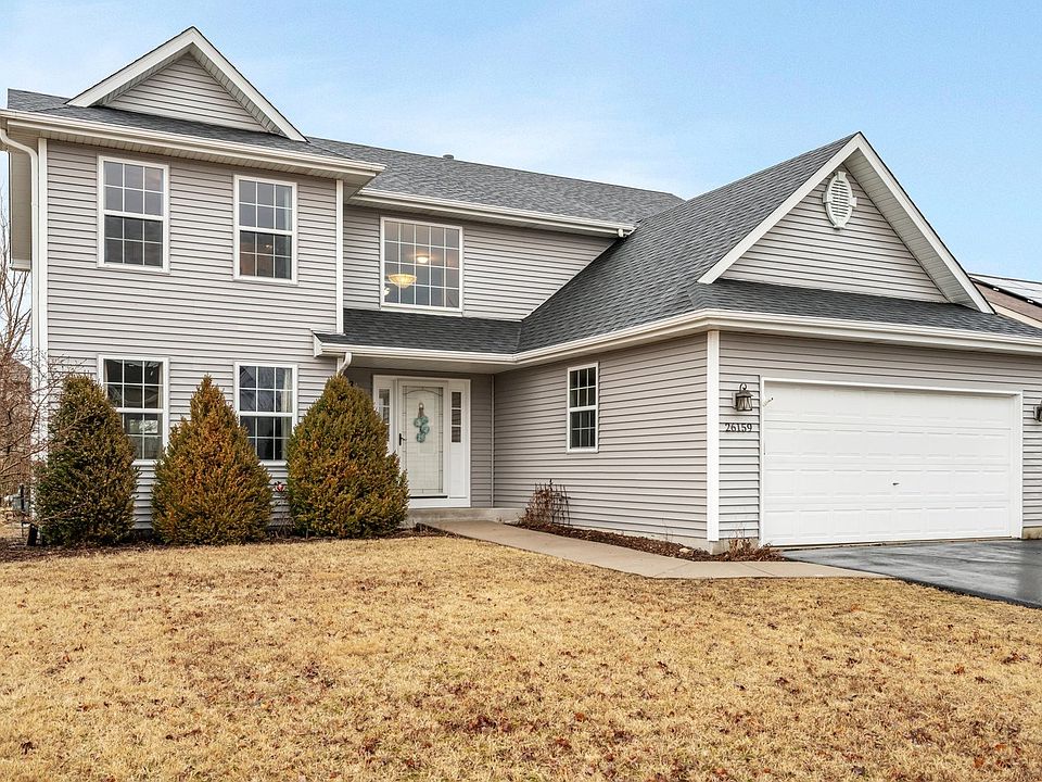 First time on the market! This beautiful & spacious home located at 26159 S Bayberry Dr has a functional & versatile layout featuring 3 large bedrooms, 2.5 bathrooms, eat-in kitchen with loads of cabinets, counter space, stainless steel appliances, & pantry, the kitchen is open to the huge family room - the perfect space for entertaining & hosting, formal living & dining room, master suite with double vanity, separate shower & soaker tub, upstairs loft - makes a great toy room/office/or 2nd family room, convenient second floor laundry, full basement with rough-in for future bathroom. Other features/updates include: two story foyer, oak rails, roof & siding (2021), wood laminate floors on main level & carpet on second level (2021), a/c replaced (approx. 2018), water heater (2016), dishwasher & stove (2022). This home is a part of accredited Channahon School District & Channahon Park District. Close to shopping, restaurants, playgrounds, splash pads, & bike paths. Easy access to highway for work commute. Schedule your showing today!