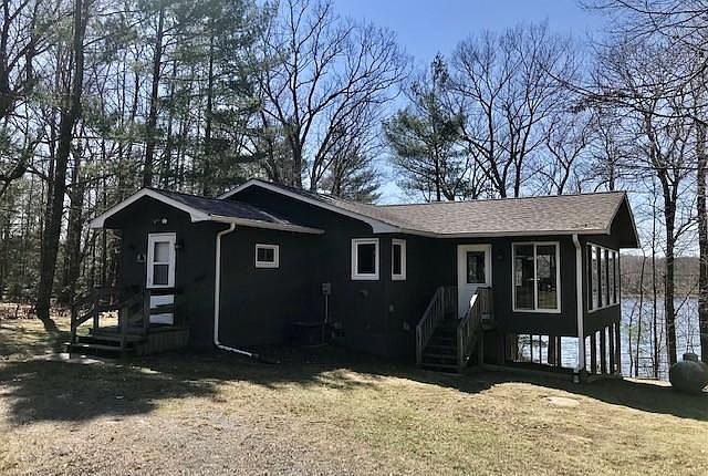 This cozy 2+ bedroom walkout cabin is situated on 1.5 acres with 126 ft frontage on 75 acre Lake Thirty. You will be captured with its laid back feel, taking in the gorgeous views and sunset from the beautiful four season porch or expansive patio. New roof October 2023, new laminate flooring and new windows on main level. Dog kennel and room for toys with shed, carport, double garage, and also single garage is insulated and has a heat source. Check out the many inclusions as listed in the supplements. Lake Thirty is known for good fishing and recreation. Come taste the good life!
