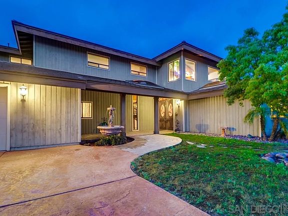 GREAT POTENTIAL! 4,555 sf of living space on 4.32 acres. Land can be split into one or two 1-acre parcels and sold for profit, or used to build a workshop for tools and toys and/or a granny flat for mom, or ADU for rental income. AMAZING VIEWS- sunrise to sunset. Epic backyard ready for making memories and hosting fabulous pool parties- privately surrounded by ancient boulders and a beautiful hedge, pool heated by solar. Spacious loft area can easily convert to an extra bedroom AND SO MUCH MORE TO SEE! Towering wood beam ceilings and doors evoke an expansive richness. HUGE master bedroom and bathroom with walk-in closet and roman jacuzzi tub you can practically swim in. Upstairs living area hosts a bar overlooking the mountains, perfect for entertaining. Multiple sitting areas arranged throughout the backyard. 17-year-old concrete tile roof. RV parking with dump hookups.