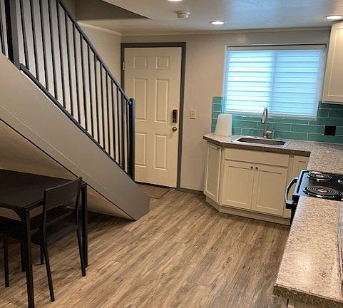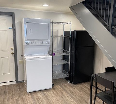 This fully furnished apartment is perfect for the single person on the go or the work from home entrepreneur. All utilities included along with an excellent WiFi connection is just part of the package. Built in 2023 it provides 407 square feet of tiny house living. Located in a quiet neighborhood of Baker City, it is close to downtown. The unit sits alone within a larger storage unit (no public access). When you enter this bright and thoughtfully designed space you are greeted by Cerulean blue tile and lots of kitchen storage. Full size appliances include a stacked washer/dryer, stove, refrigerator, dishwasher and microwave. The upstairs loft bedroom contains a queen size bed and sitting area. The window a/c unit keeps the entire apartment cool in the summer. The bathroom has a spacious step in shower. Private off street parking, key pad access and motion activated light provide added security. All utilities included. No smoking or vaping allowed. No pets or comfort animals.