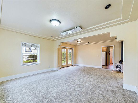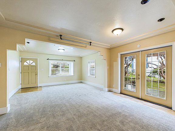 Charming Bungalow filled with natural light. French doors lead you to a protected deck, the oversize yard is fully fenced and cross fenced. Very large detached garage is divided into two areas and has a full bathroom, this would make a great space to create an ADU. The house is full of charming features; kitchen has loads of cabinets a large skylight with bead-board vaulted ceilings, enamel gas stove in the living area, nice tiled bathroom, deep window sills, laundry room is inside the house and tons of off street parking in back!