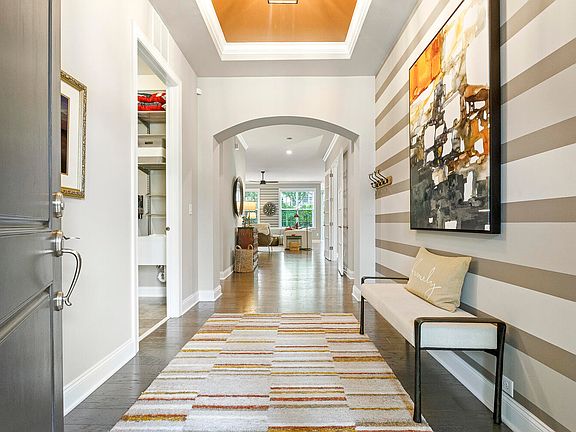 Stunning One-Story Toll Bros. custom built home in popular Regency at White Oak Creek, filled w/ beautiful updates throughout! Hardwood floors, all new Interior and Exterior Lighting, Ceiling Fans in Bedrooms, Custom Blinds/Window Treatments through-out, and Custom Elfa Shelving in all Closets, Laundry Room, and in the Garage. Kitchen includes high-end KitchenAid and SubZero appliances, Center Island with Quartz and Stainless Steel Farmhouse Sink, Crowned Cabinets with Under-Mount Lights, and a Bright Dining Area with a Pella Sliding Glass Door. Home Office has a Double French Door Entry and Wallpaper Featured Ceiling. Owners Suite has a trey ceiling with crown, premium carpet (replaced two years ago), Walk-in Closet, and Renovated Bath (2023) with with a Full Shower Replacement (including door), Sinks, Faucets, Quartz Countertop, and Lighting. Two Nice Size Secondary Bedrooms and Updated Hall Bath with Quartz Countertop, new lighting, faucets, fixtures and mirror. Privacy awaits w/ Deck and Patio surrounded by colorful Landscaping (HOA maintains yard, low maintenance living!). Community Pool, Tennis, and Playground. Access to Clark Branch Greenway Trailhead at the end of the street. Close to Area Parks & Greenways, downtown Apex, Jordan Lake, Publix, Beaver Creek Commons, and easy access to US-64 and The Triangle Expressway!