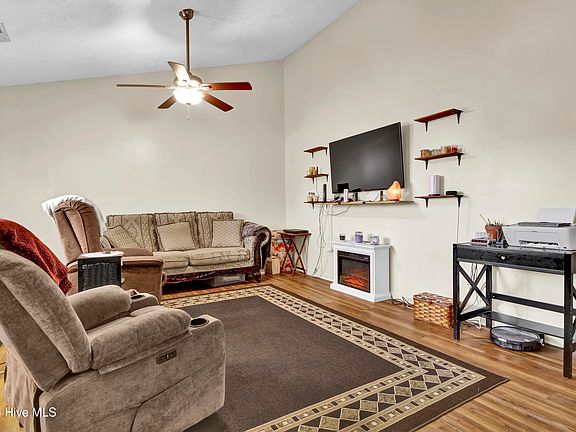 Cozy two bedroom, two bath home has large living and dining areas. Updated kitchen and baths. Laminate flooring. Fenced rear yard has privacy fencing and pergola over patio. Two detached buildings are 12 x 12 and 8 x 8. Smaller building has electricity. Plenty of outside storage. Convenient to shopping and beaches. Termite Bond Seller has is not transferrable to Buyer. Expires June 2025. Seller is furnishing One Year Home Warranty for Buyer.