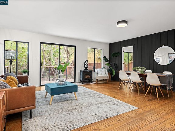 Set on a peaceful court, this single-story home combines stylish updates with natural beauty on a generous 11,528 sq ft lot. With 4 bedrooms across 1,600 sq ft, it’s designed for comfort & flexibility. Skylights & hardwood floors fill the living & dining area with natural light, while sliders connect seamlessly to the backyard deck. The remodeled kitchen features quartz counters, sleek modern cabinetry, gas range,& bar seating, creating a space that’s perfect for casual meals or entertaining. The primary bedroom includes its own half bath & mirrored closet doors, while 2 secondary bedrooms share a Jack & Jill full bath. A 4th bedroom offers flexibility for a guest room, home office, or fitness space. An additional half bath off the main living area adds convenience for family & guests. Recent upgrades like a tankless water heater round out the interior. Outdoors, the deck extends entertaining space, overlooking a level lawn framed by mature trees. A custom treehouse adds a unique retreat, making the yard both playful & inviting. The paver driveway adds curb appeal & function. Enjoy a location walkable to Larkey Park & close to shopping, trails & local dining. Top rated Pleasant Hill schools serve the neighborhood & nearby BART & commuter routes make commuting a breeze.
