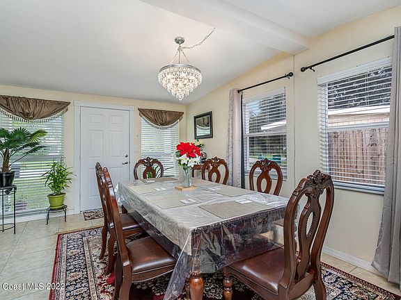 Ceramic Tile in Living Areas with Laminate in Bedrooms- no carpet. The Open Concept Kitchen is Equipped with Granite Countertops, Classic Cherry Cabinets, and SS Appliances. Lovely updated bathroom. Huge Family Room Opens Up to Large Screened in Patio that Makes a Great Additional Living Space. Fully Fenced Backyard Lined with Mature Mango Trees, Large Attached Storage/Shop Area Plus Indoor Laundry Makes this Home a Must See! Located in the Heart of Melbourne, this One Won't Last, Make Your Appointment Today!