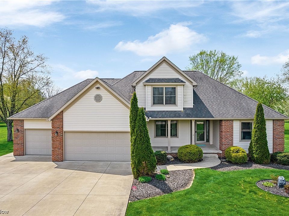 SOLD BEFORE PRINT. Welcome to 2616 Canaan Dr in Uniontown. This home features 3 bedrooms, 2 1/2 baths with a 3 car attached heated garage with drains and hot & cold water. New 24 x 26 pole barn w/metal roof, loft and also has water and electric. Solid core doors throughout. 12 foot ceilings in the family room. First floor primary bedroom. Ensuite includes a jetted tub, 2 sinks with granite countertops, separate shower, water closet, and large walk-in closet. Updated kitchen includes new plank flooring, shiplap accent walls, new granite countertops, stainless steel appliances, tile backsplash, new lighting, sink and faucets. New covered back porch with vaulted ceiling, composite decking, stamped concrete patio. 2 bedrooms on the 2nd floor with full bath. Office or dining room on the first floor with double doors to close for privacy and a pocket door from the kitchen. SUpersized laundry room. Extra large pantry. Large basement with finished bedroom. Large flat lot!