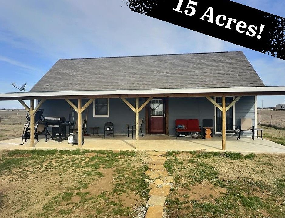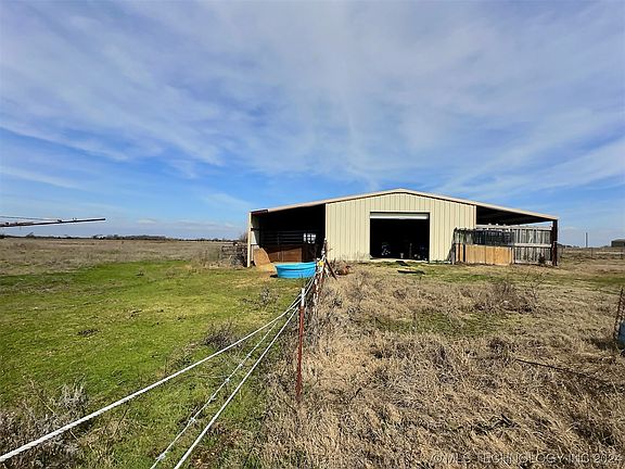 Live Quietly in the country and bring your horses, show animals or a few cows. This quaint 2 Bedroom 1 bath ranch home on 15 acres features a 30 x 40 shop with electric on concrete floor. 16 x 40 over-hang on the east and west side of shop for potentially 6 horse stalls. Property line is fully fenced with hog wire and hot wire. Cross-fenced in some areas for rotational grazing with Native and Bermuda mix grasses. ADDED BONUS on the north corner is a second electric meter, water meter, and aerobic system. The 680 Sq ft home features a covered front porch to enjoy the tranquility, stained concrete floors for easy cleaning, and an open kitchen/living concept. Located in Rock Creek School District, and 12 miles of Choctaw Casino Resort and Durant Regional Airport. Approximately 15-20 minutes to Platter area with riding trails and Lake Texoma. Track over to Tishomingo to visit Blake Shelton's Ol Red Restaurant and Music Venue or go north over to Atoka to visit Reba McIntire's restaurant and music venue, and Lane Frost's family western store, or enjoy the main street of Durant with its boutiques, shopping and restaurants.