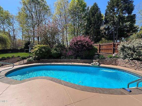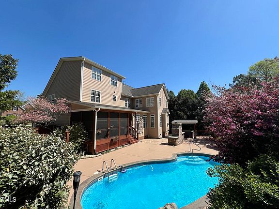 Oasis Resort Living at it's Best in Wake Forest yet minutes to Shopping & Eats. This Home Checks ''All The Boxes'' ! Open Floor Plan with Chef Kitchen, Two Story Family Room, 5 BR & 4.5 Baths, Main Floor Guest Suite, Media Rm, Bonus Rm, Formal Dining & Formal Living or Office, You Decide. Third Floor Bonus Room, Screened Porch and did I mention ''The Pool'' and the Hot Tub ?! Outdoor Living at it's Very Finest with Oasis Fenced Backyard, Playhouse/Shed in a Park Like Setting with Nature GALORE ! Side Entry Garage and Brick Front. It is the ''Total Package'' for Resort Living ! Don't Miss This Opportunity !