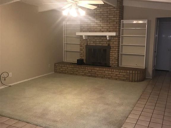 Spacious living area with wood burning fireplace, built in shelves & beamed ceiling with ceiling fan. Kitchen with tile counter tops, abundance of cabinets and breakfast area. Huge master suite with large walk in closet. All bedrooms feature carpet flooring, mini blinds, ceiling fans and nice size closet space. Hall bath features double sinks & hall has great closet space. Security deposit is $1290 and app fee is $40 for anyone 18+.