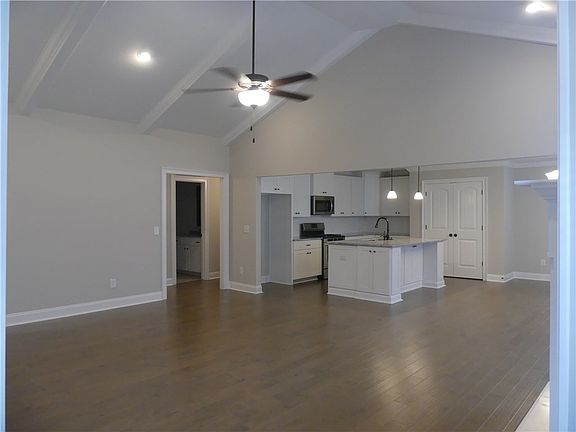 into a roomy living area with a vaulted ceiling. Next experience the open