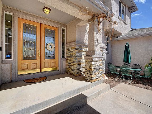 Beautiful Luxury Home in sought after Pine Creek neighborhood * Just minutes away from I-25, The Promenade Shops at Briargate, D-20 Schools, Fabulous Restaurants, Hospitals, Parks and Grocery Stores, and Pine Creek Club House * This well maintained stucco home sits on a cul-de-sac lot just over a 1/4 acre * Open floor plan w/lots of modern touches ** The Cooks dream kitchen features granite counter tops, stainless steel appliances, a KitchenAid glass stove top, double under-mounted granite composite sink,glass tile back splash, large pantry, and over looks the Family room * Take in the Family Rooms soaring 19+ ft.ceiling and a wall of windows that showcase the private backyard *It has built in shelving, updated tiled fire place, and wired for surround sound* Off the eat in kitchen you can walk out to the generous sized covered backyard patio* Fully fenced backyard comes w/outdoor speakers, fully landscaped w/auto sprinkler system, and has three vegetable/or flower garden boxes ready for planting*The main floor also consists of a bedroom, full bathroom, living room (currently being used as an office), formal dining room,and laundry/mud room located off the garage ** The Upstairs has a stunning master suite with a sitting area & 2nd gas fireplace,his & hers walk-in closets,wired for surround sound, and a luxurious 5 piece bath with soaking tub & mountain views * down the hall from the master are 2 more bedrms and a spacious full bath complete the upper level ** The basement is open and bright *You will enjoy the large second family room/rec room with built in surround sound plus plenty of room for table tennis or billiards and Theater area * Wet Bar area great for entertainment and movie snacks * Behind the double french doors is the exercise room or office * A large bedroom with walk in closet, and a full bath complete this basement plus you will find there is plenty of storage room * SMART HOME* 2 Smart EcoBee Thermostats * eufy Security Wi-Fi Video Doorbell *
