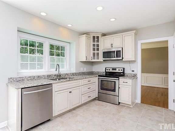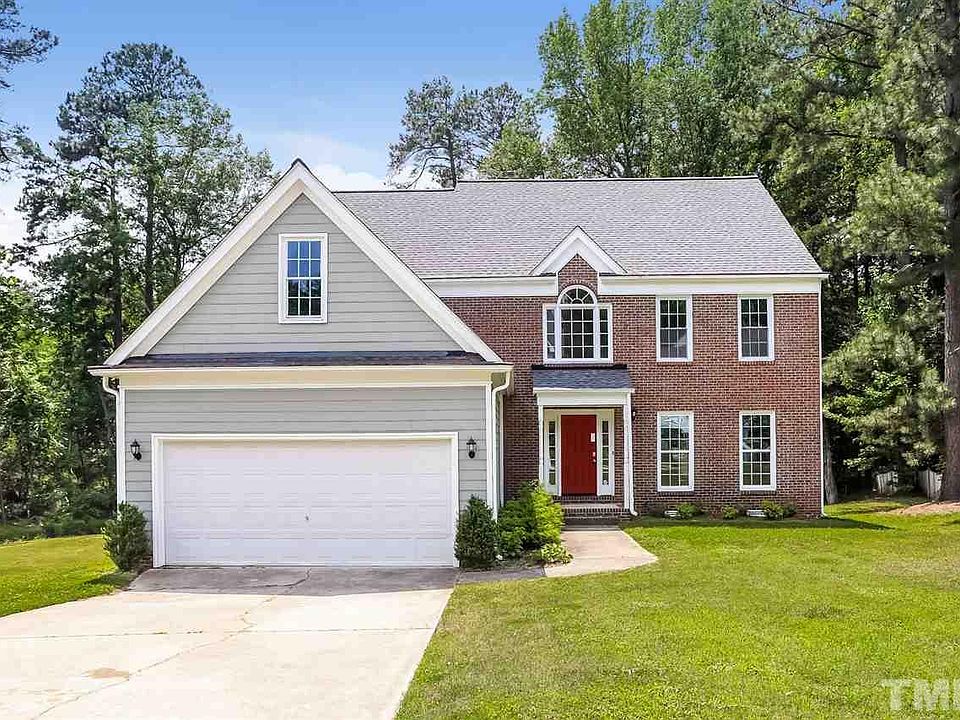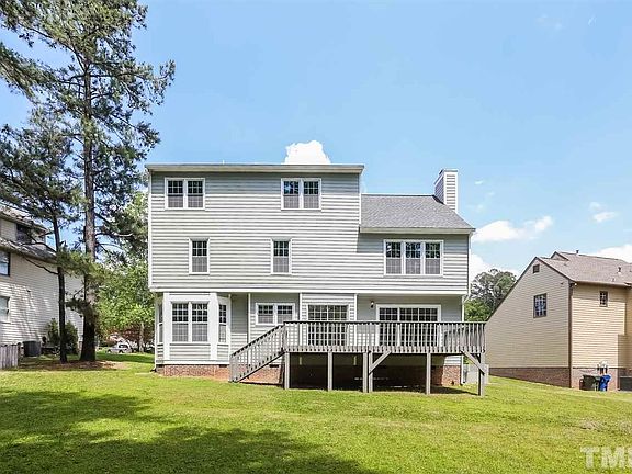 This Raleigh two-story offers a deck, hardwood flooring, a fireplace, and a two-car garage.