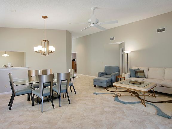 Welcome home to 2616 La Cristal Circle! Beautiful 3 bedroom, 2 bathroom, single-story home in the heart of Palm Beach Gardens. Pride of ownership shows in this pristinely kept home. Upon entering you will notice the soaring vaulted ceilings, open living area, and abundance of natural light. Tile flooring throughout the living room and kitchen, with stainless steel appliances and granite countertops in the kitchen. The spacious kitchen has in eat in area and a door leading to a private patio space. The master bath features dual sinks and vanity with granite countertops, frameless glass door walk-in shower with bench seat, and ample walk-in closet space. Two additional bedrooms are at the front of the home. Enjoy the serenity of the screened-in lanai with views of the beautifully landscaped yard. CBS construction, laundry room with full size washer & dryer and utility sink, accordion shutters, and a 2-car garage! Crystal Pointe is centrally located to the best of the Palm Beaches. Biking distance to Juno beach, close to dining, shopping, The Gardens Mall, and PBI airport. Crystal Pointe has a 24-hour manned security gate, an on-site property manager, a heated swimming pool, tennis, pickleball, basketball and handball courts, fitness center and community room, tennis courts, sidewalks, lakes, a tot lot, planned community events, and much more! Schedule your private showing today.