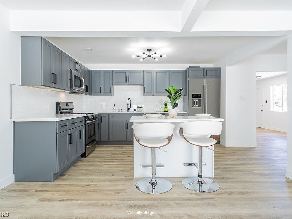 Welcome to this stunning, fully upgraded 3-bed, 2-bath home featuring an array of modern amenities & designer touches. Step into the bright, open-concept living space showcasing new LVP flooring, 5-inch baseboards, & fresh paint throughout. The gourmet kitchen boasts a dazzling backsplash, sleek quartz countertops, new gray shaker cabinets with soft-close hinges, & stainless steel appliances, creating the perfect space for culinary delights. The luxurious bathrooms feature custom tile showers & new fixtures, adding a spa-like feel. Outside, enjoy the convenience of a long driveway, ample parking for your RV, & a fully fenced front yard for privacy & security. Don't miss this, a must-see.