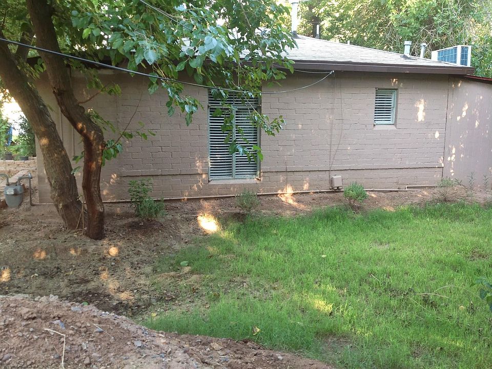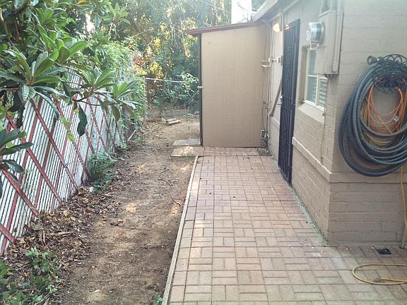 Charming studio guesthouse/casita in East-Central Phoenix (Foote Addition Neighborhood). Size is almost 400 sq. ft. Older, quiet neighborhood with mature trees (as many pecans as you can eat) and flood irrigation. Lots of privacy and shade for the prospective tenant, and covered parking near the stand-alone house. The detached unit is located at same address as my own home, but the two houses sit at opposite ends of a large, 1/3 acre property. Many guest houses in the area tend to sit very near the main house; this is definitely not the case here. You'll also have your own mailbox. The guest house has been recently renovated, including new tile flooring, new A/C unit (incl. heat pump), new toilet, new fridge, new window blinds, and a stacked dryer/washer. Cable internet can be provided if needed. Kitchen includes newer fridge, microwave, new sink with garbage disposal, and stove. Stacked washer/dryer located inside the large closet. Built-in bookcase and bedframe (full size mattress and smaller) are also included in the living area. Lockable storage shed available (attached to guest house- outside). Rent at $900/month includes water and trash services (you will have your own dumpster). Gas and electricity not included. $900 refundable security deposit. 6 month lease required. Pets will be considered on a case-by-case basis for an additional refundable security deposit. Please no smokers. Please EMAIL or TEXT for any questions or concerns. Owner pays for trash and water. Electricity and gas not included.