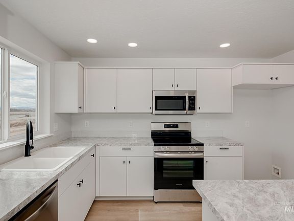 This brand new home located in vibrant Kuna, Idaho welcomes you with open arms. Enter inside the Tatom 2054 and feel immediately welcomed. As you move toward the back of the home, you find a well-appointed kitchen complete with a generous pantry and a kitchen island. The back yard feels like an extension of the home when it's easy to access right from the dining room. A formal living room at the front of the home and the main living room in the rear provide multiple living spaces to host guests in or relax. The upper level primary suite is accompanied by the laundry room and three additional bedrooms. The fourth bedroom offers a walk-in closet for extra clothes or storage. Photos are similar. All selections are subject to change without notice, please call to verify.