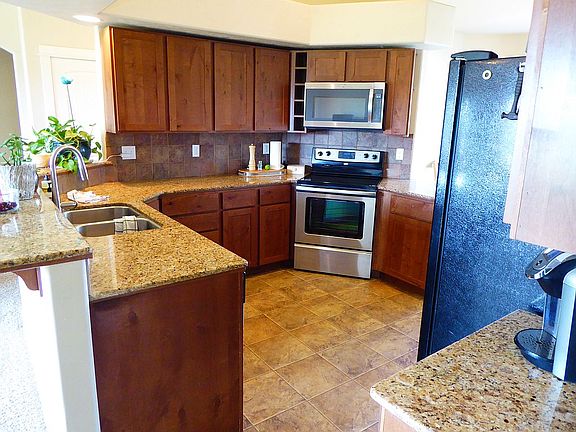 This home is very cute with slab granite counters, custom alder cabinets, counter to cabinet tile backsplash, stainless steel appliances. Split bedroom plan, 9' ceilings with vaults in the great room & kitchen. Nice master & master bathroom with over sized shower, double vanities, walk in closet. 2x6 construction, 90%+ gas furance, low-e windows, fully wood wrapped windows. Almost 1/3 acre lot with east backyard, huge garden ready to harvest, play structure. Oversized garage with 8 foot garage door, plus 10 ft access gate (possible RV parking) to spacious back yard. Not built by a "production builder". Custom builder & custom plan - you won't see this plan over & over & over again. Quality & cute!!