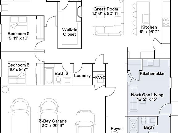 Multi Generational Home design that is great for all with an attached suite that features its own kitchenette options, living room, bedroom, bathroom and private entrance. In the main home is an open living area with a back patio attached, as well as three additional bedrooms, including the owners' suite. Prices, dimensions and features may vary and are subject to change. Photos are for illustrative purposes only. Please meet with new home consultant for tour of model homes. Sample photos. AC for 7k